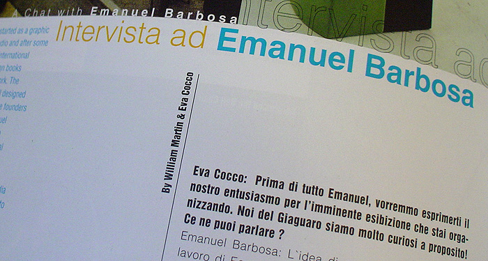 COCCO, Eva Cocco, MARTIN, William, "A Chat with Emanuel Barbosa", in: Il Giaguaro - International Entertainment Magazine, nº7, Autumn 2001, Alessandro Cassela Editore, Roma, 2001, pp. 30-33